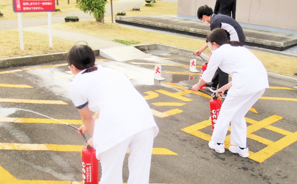 実際の火災を想定して、消火器の噴射を行う訓練をしました。